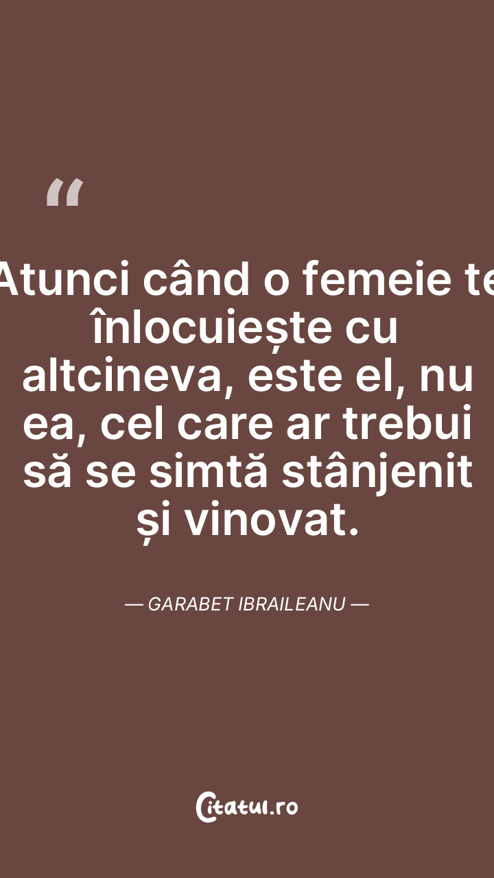 Atunci când o femeie te înlocuiește cu altcineva, este el, nu ea, cel care ar trebui să se simtă stânjenit și vinovat. Garabet Ibraileanu