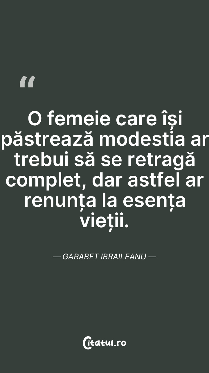 O femeie care își păstrează modestia ar trebui să se retragă complet, dar astfel ar renunța la esența vieții. Garabet Ibraileanu