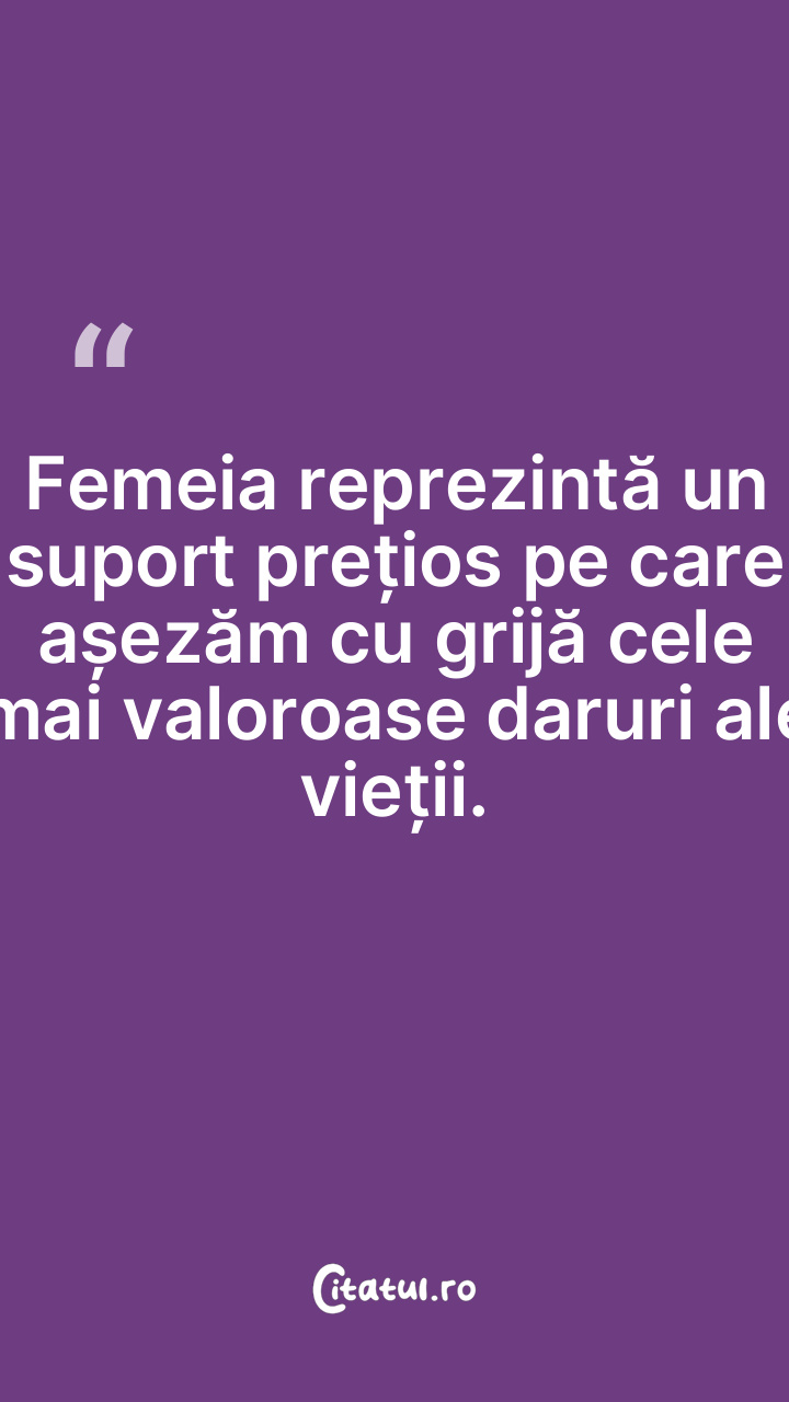 Femeia reprezintă un suport prețios pe care așezăm cu grijă cele mai valoroase daruri ale vieții.