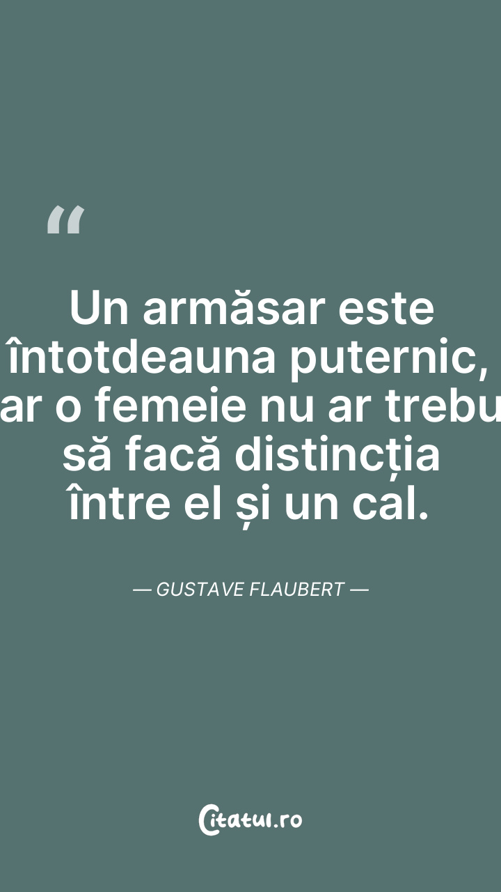 Un armăsar este întotdeauna puternic, iar o femeie nu ar trebui să facă distincția între el și un cal. Gustave Flaubert