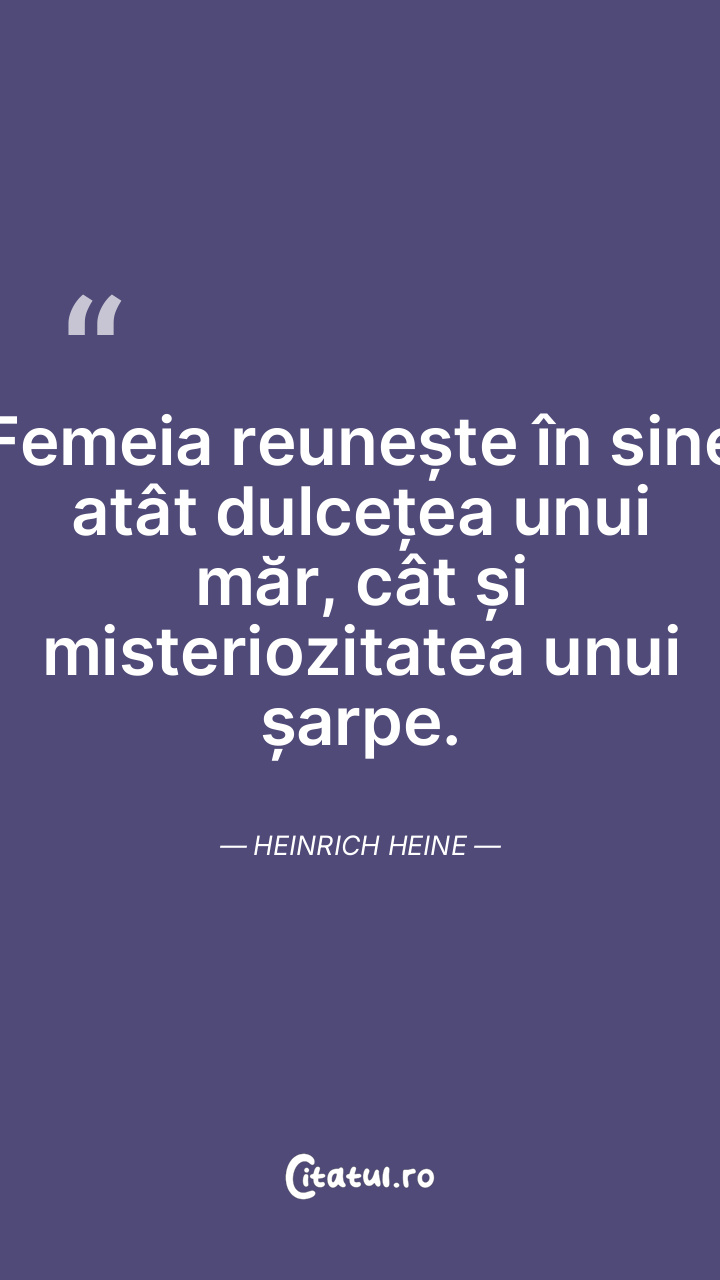 Femeia reunește în sine atât dulcețea unui măr, cât și misteriozitatea unui șarpe. Heinrich Heine