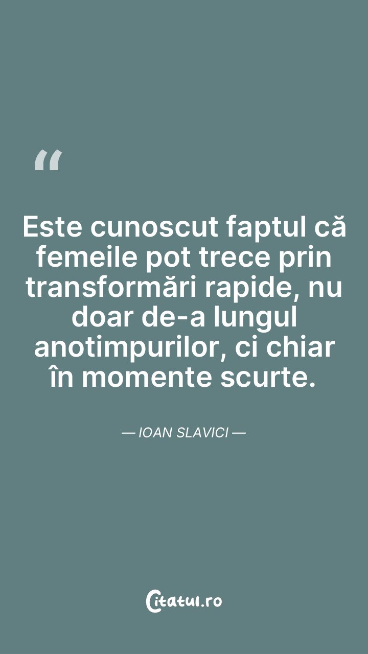 Este cunoscut faptul că femeile pot trece prin transformări rapide, nu doar de-a lungul anotimpurilor, ci chiar în momente scurte. Ioan Slavici