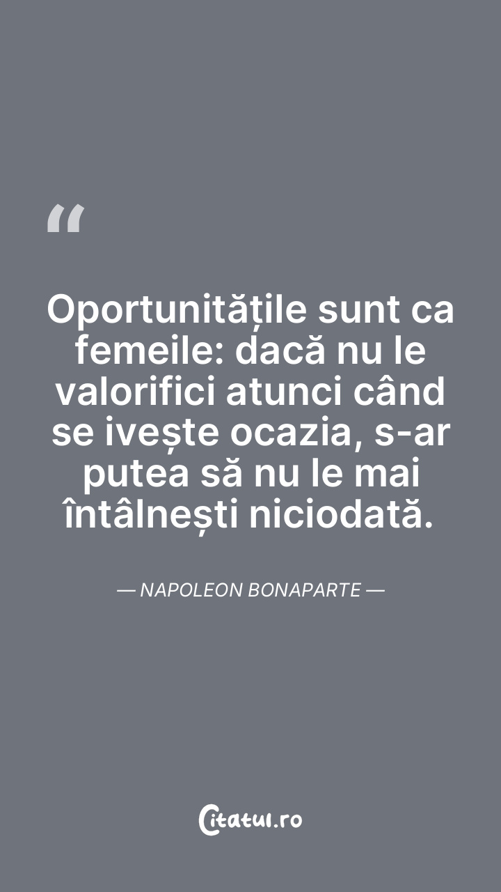 Oportunitățile sunt ca femeile: dacă nu le valorifici atunci când se ivește ocazia, s-ar putea să nu le mai întâlnești niciodată. Napoleon Bonaparte