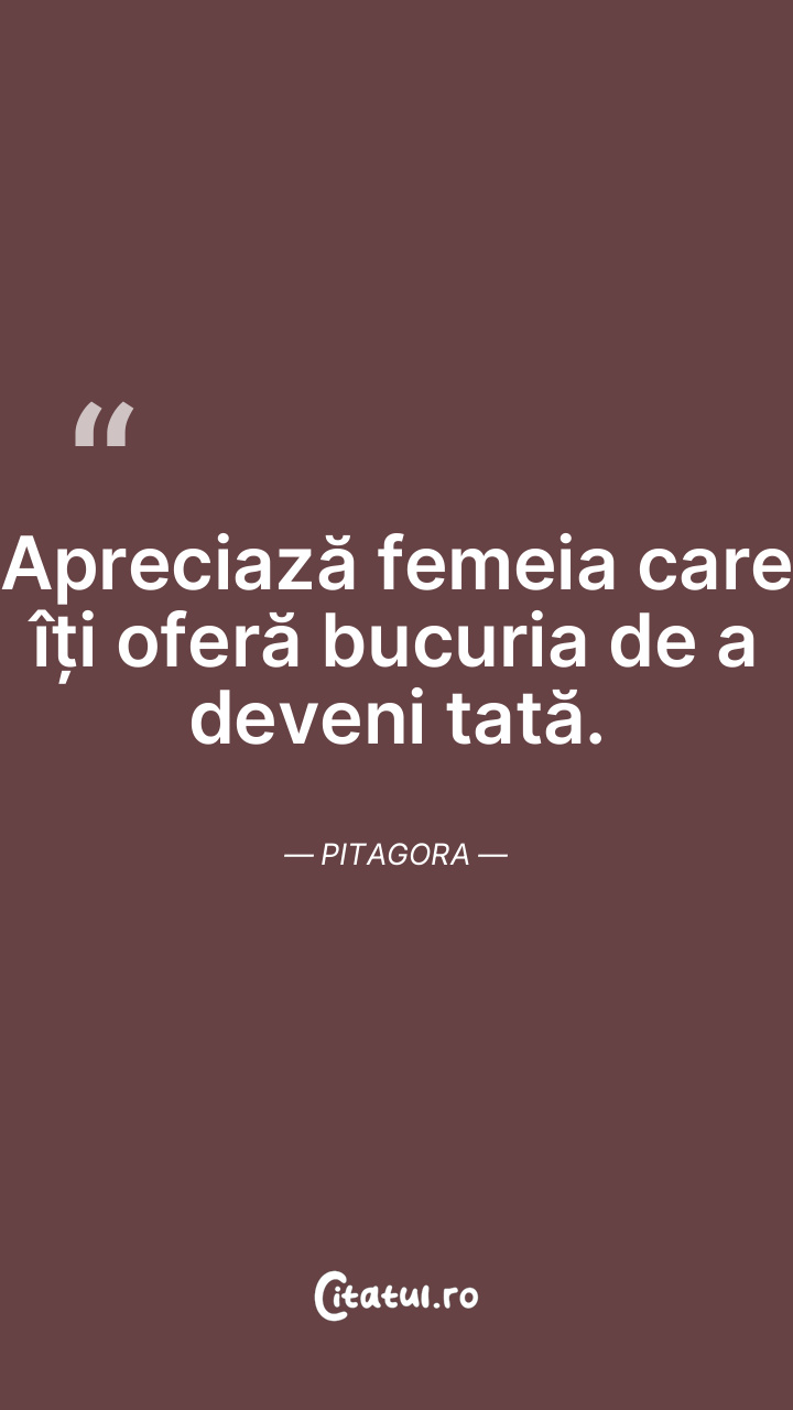 Apreciază femeia care îți oferă bucuria de a deveni tată. Pitagora