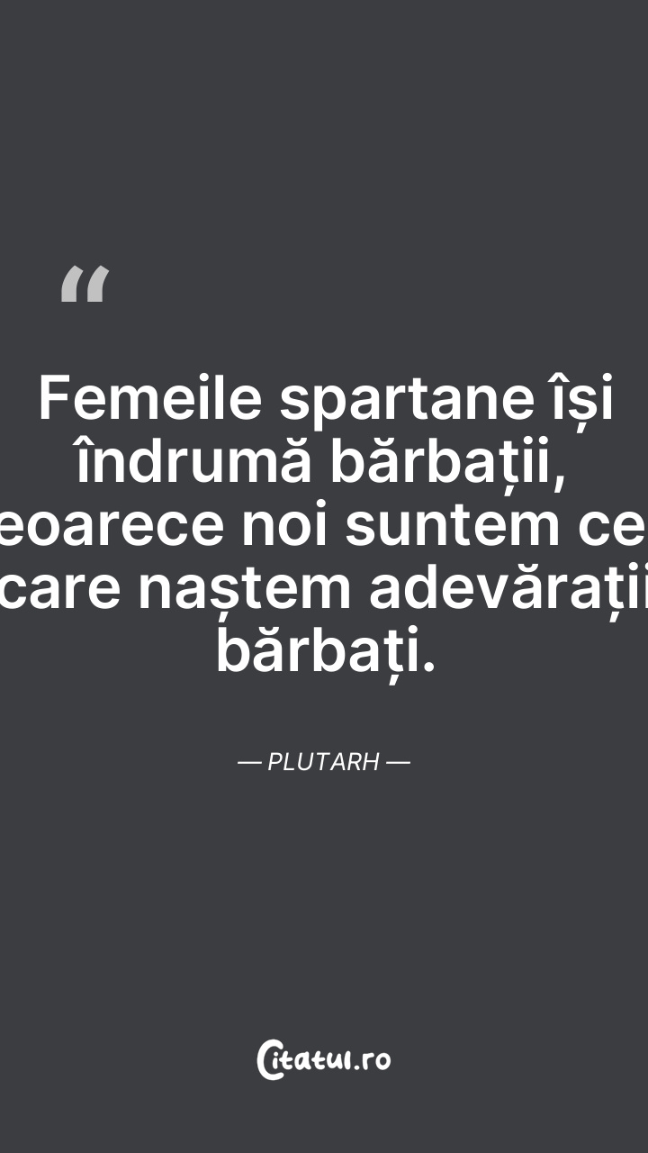 Femeile spartane își îndrumă bărbații, deoarece noi suntem cele care naștem adevărații bărbați. Plutarh
