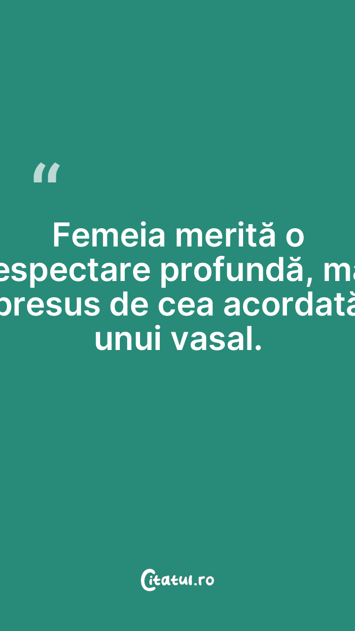 Femeia merită o respectare profundă, mai presus de cea acordată unui vasal.