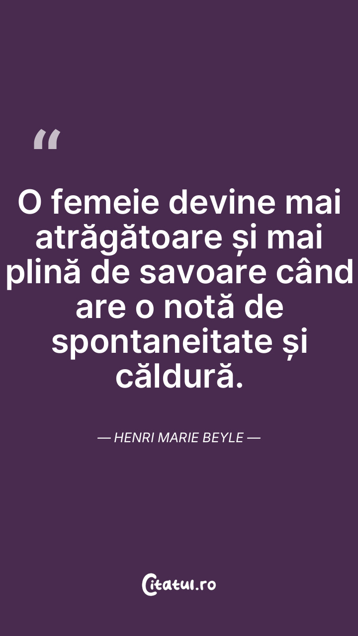 O femeie devine mai atrăgătoare și mai plină de savoare când are o notă de spontaneitate și căldură. Henri Marie Beyle