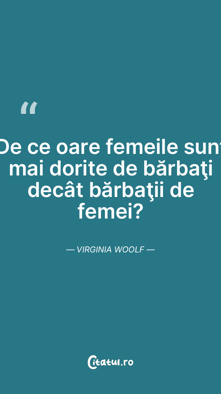 De ce oare femeile sunt mai dorite de bărbaţi decât bărbaţii de femei? Virginia Woolf