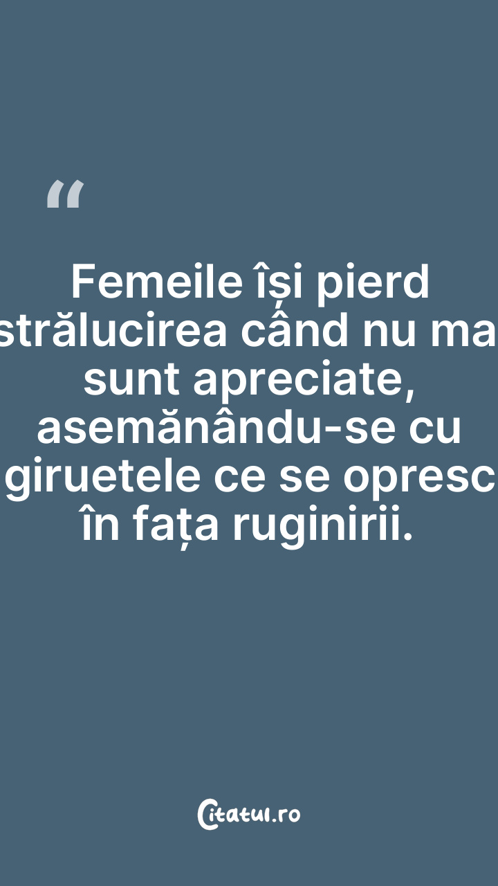 Femeile își pierd strălucirea când nu mai sunt apreciate, asemănându-se cu giruetele ce se opresc în fața ruginirii.