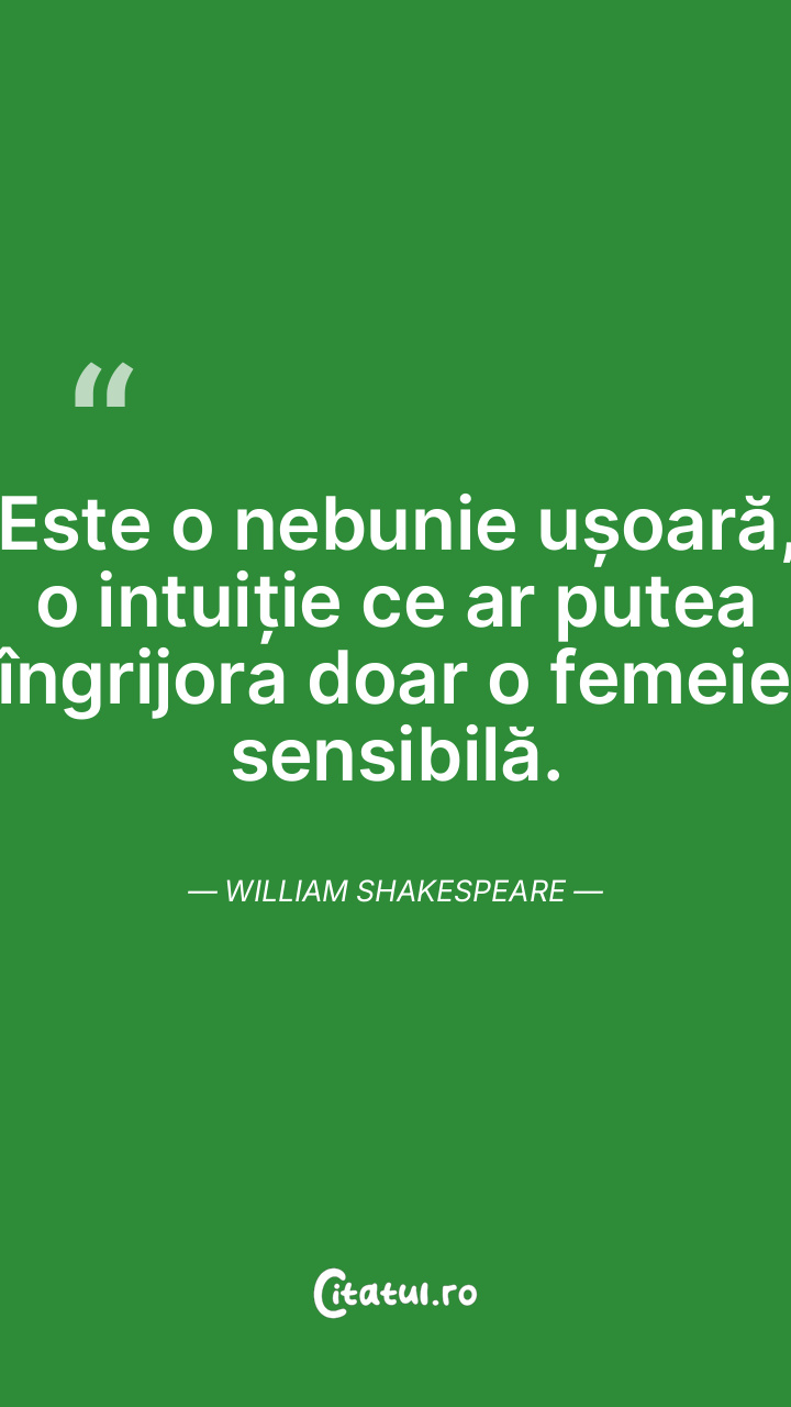 Este o nebunie ușoară, o intuiție ce ar putea îngrijora doar o femeie sensibilă. William Shakespeare