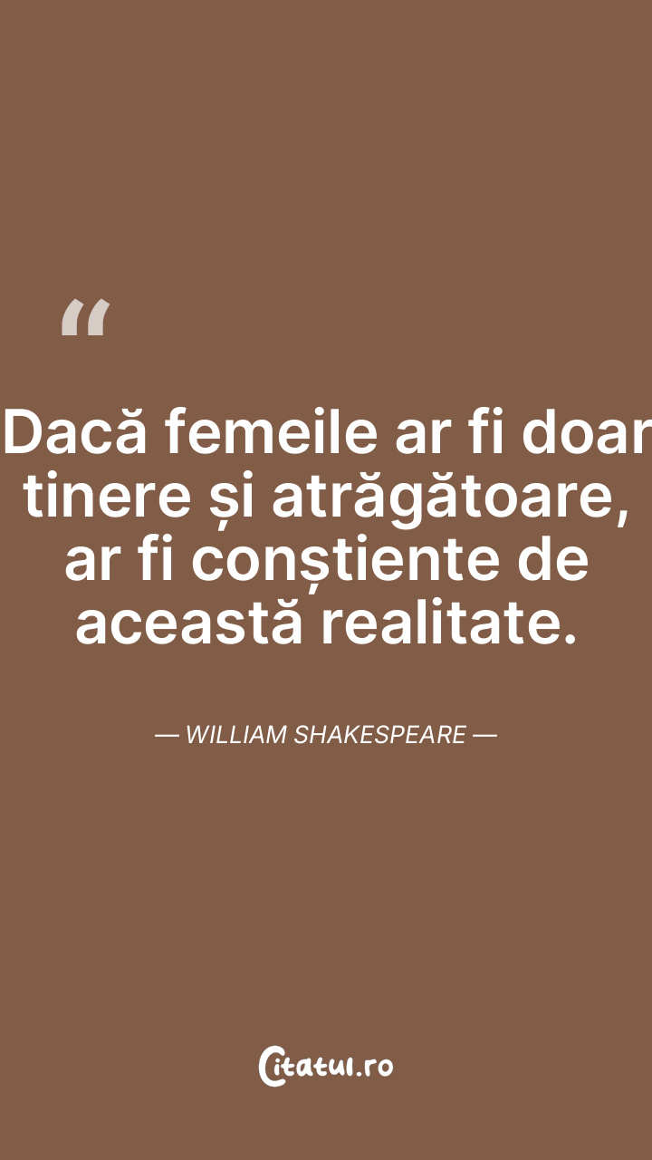 Dacă femeile ar fi doar tinere și atrăgătoare, ar fi conștiente de această realitate. William Shakespeare