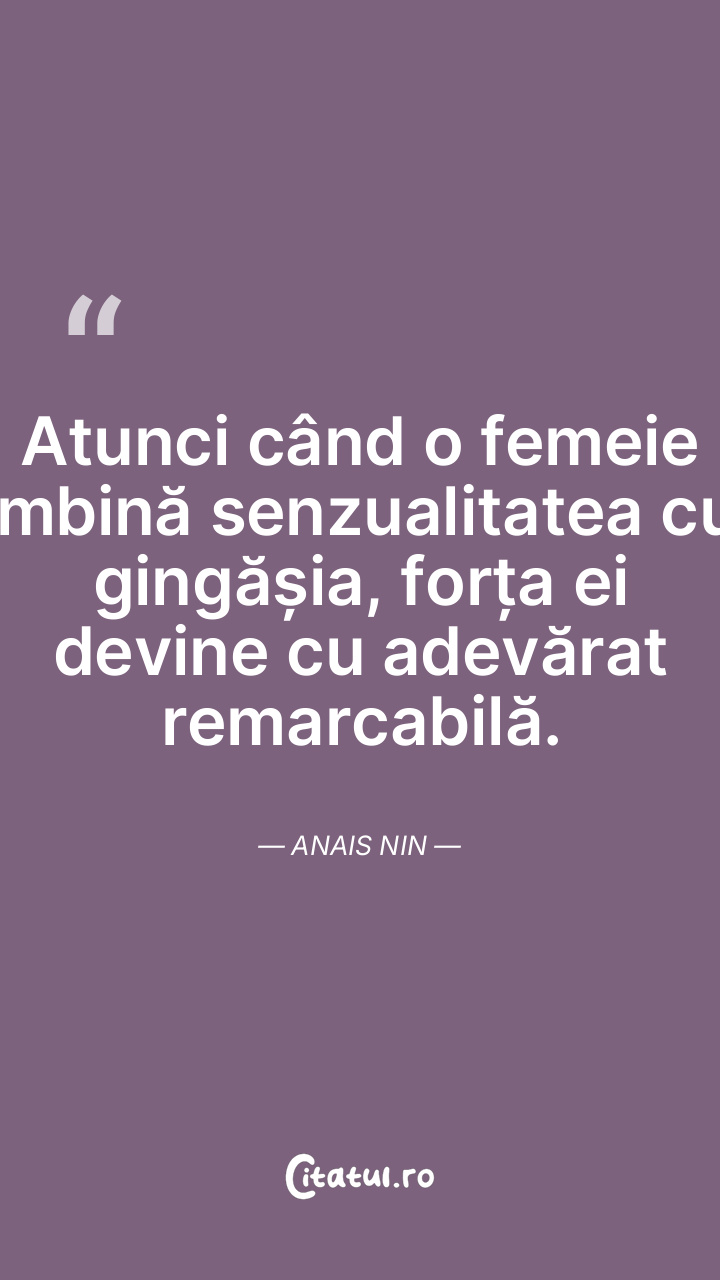 Atunci când o femeie îmbină senzualitatea cu gingășia, forța ei devine cu adevărat remarcabilă. Anais Nin