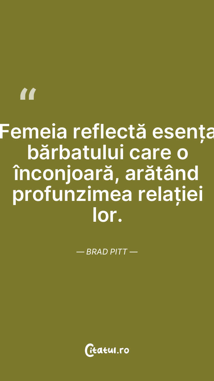 Femeia reflectă esența bărbatului care o înconjoară, arătând profunzimea relației lor. Brad Pitt