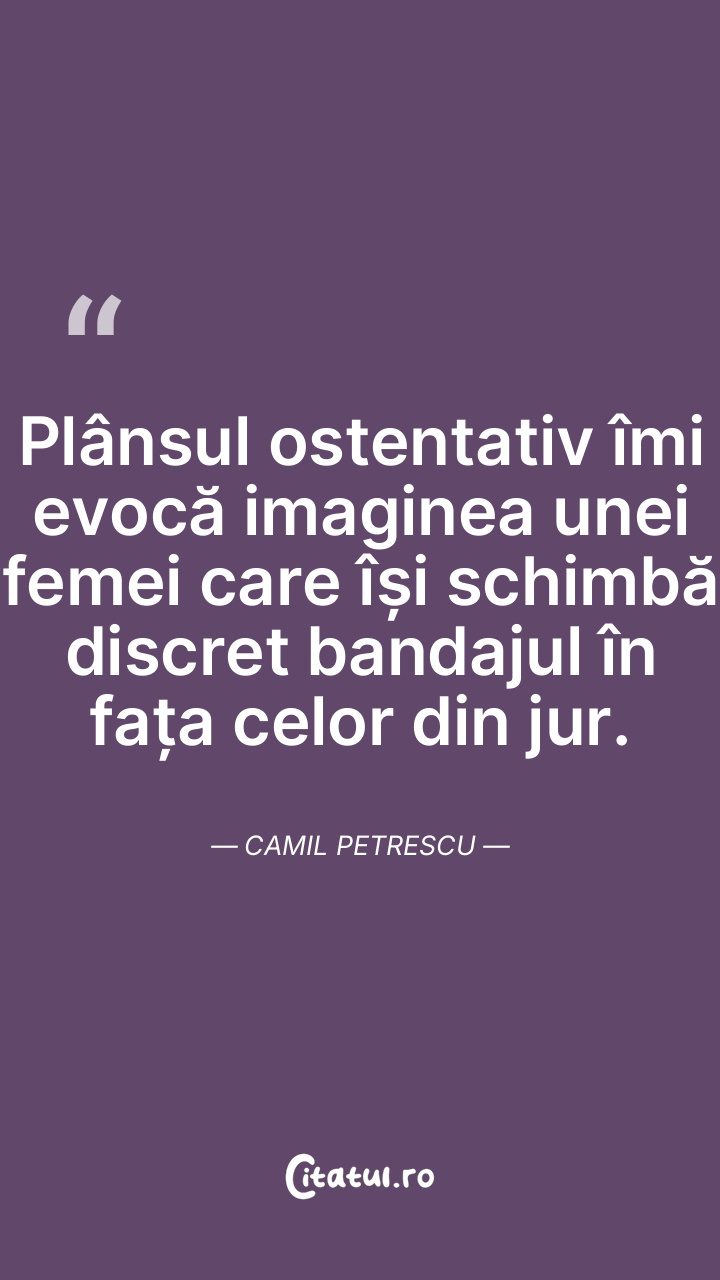 Plânsul ostentativ îmi evocă imaginea unei femei care își schimbă discret bandajul în fața celor din jur. Camil Petrescu