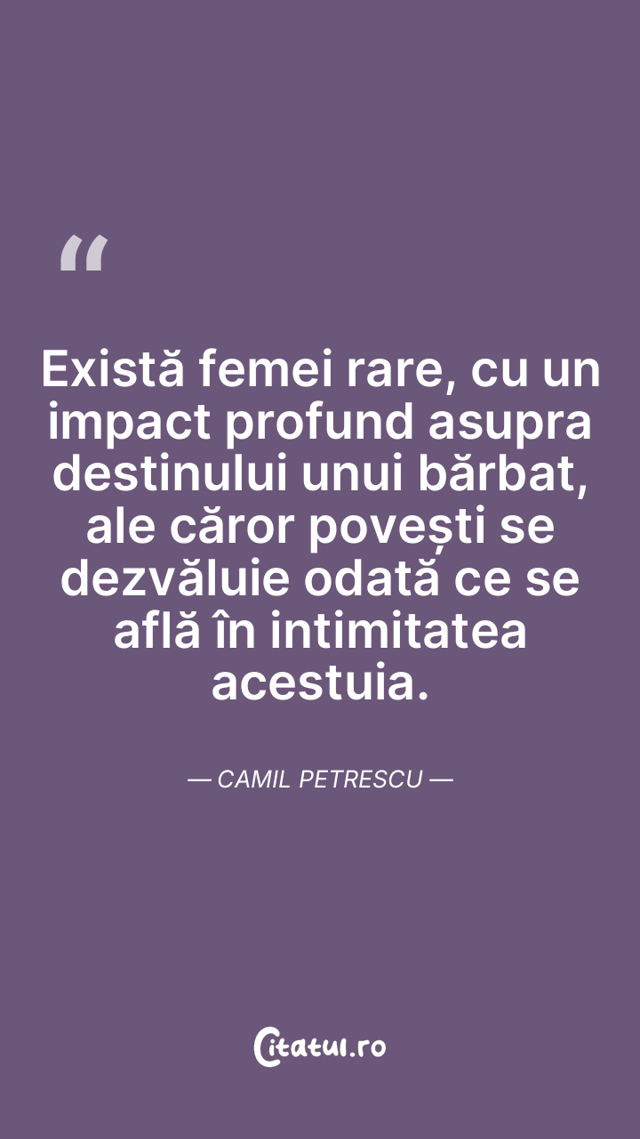Există femei rare, cu un impact profund asupra destinului unui bărbat, ale căror povești se dezvăluie odată ce se află în intimitatea acestuia. Camil Petrescu