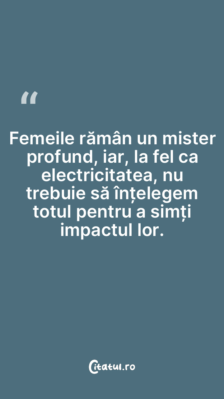 Femeile rămân un mister profund, iar, la fel ca electricitatea, nu trebuie să înțelegem totul pentru a simți impactul lor.