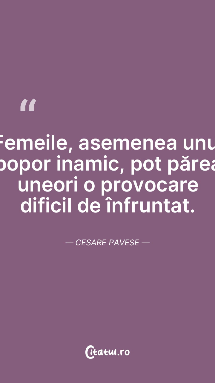 Femeile, asemenea unui popor inamic, pot părea uneori o provocare dificil de înfruntat. Cesare Pavese