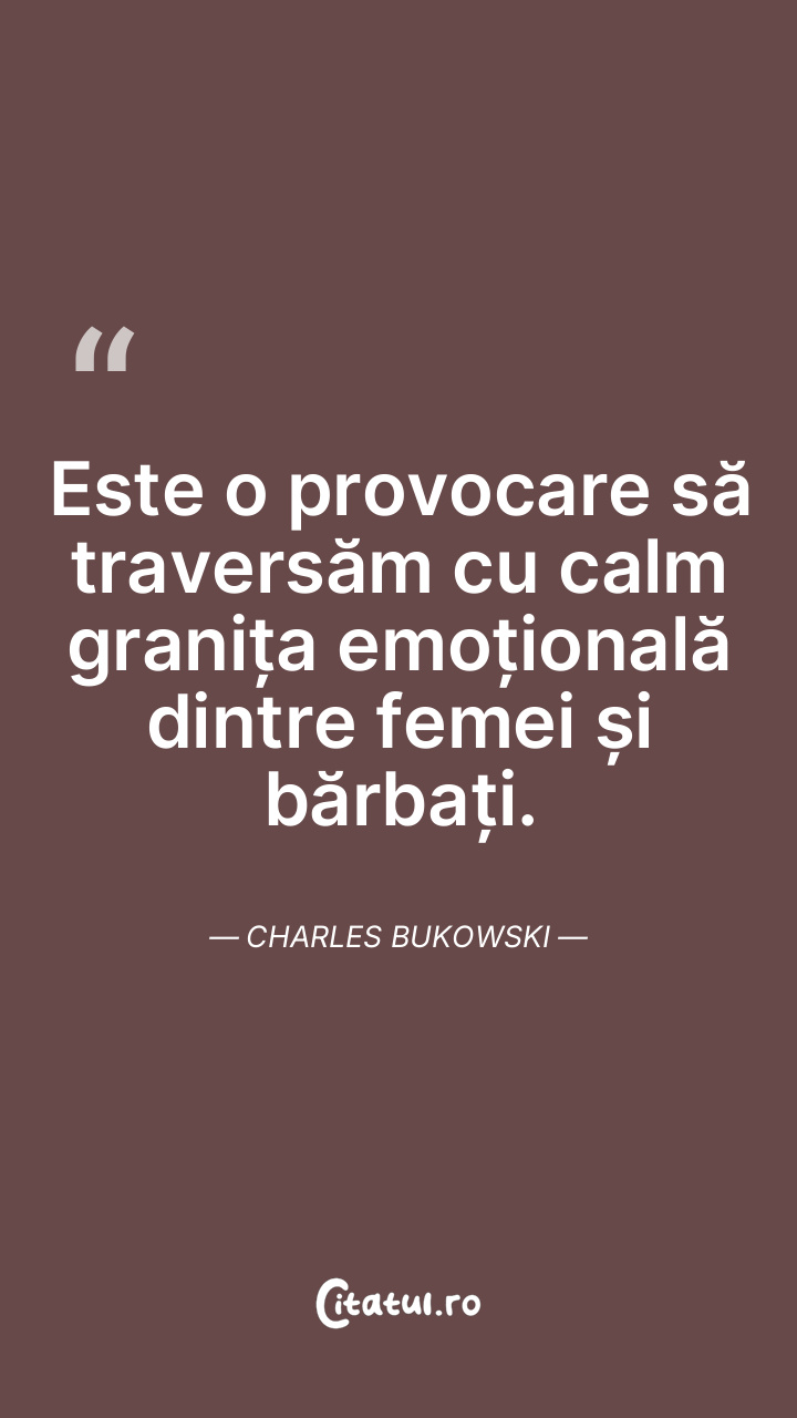Este o provocare să traversăm cu calm granița emoțională dintre femei și bărbați. Charles Bukowski