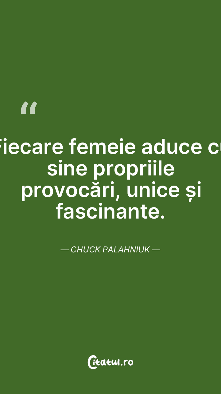 Fiecare femeie aduce cu sine propriile provocări, unice și fascinante. Chuck Palahniuk