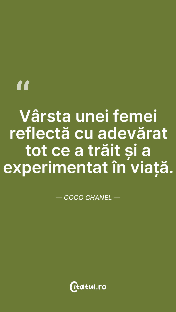 Vârsta unei femei reflectă cu adevărat tot ce a trăit și a experimentat în viață. Coco Chanel
