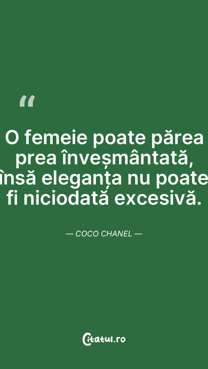 O femeie poate părea prea înveșmântată, însă eleganța nu poate fi niciodată excesivă. Coco Chanel