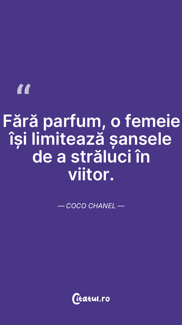 Fără parfum, o femeie își limitează șansele de a străluci în viitor. Coco Chanel