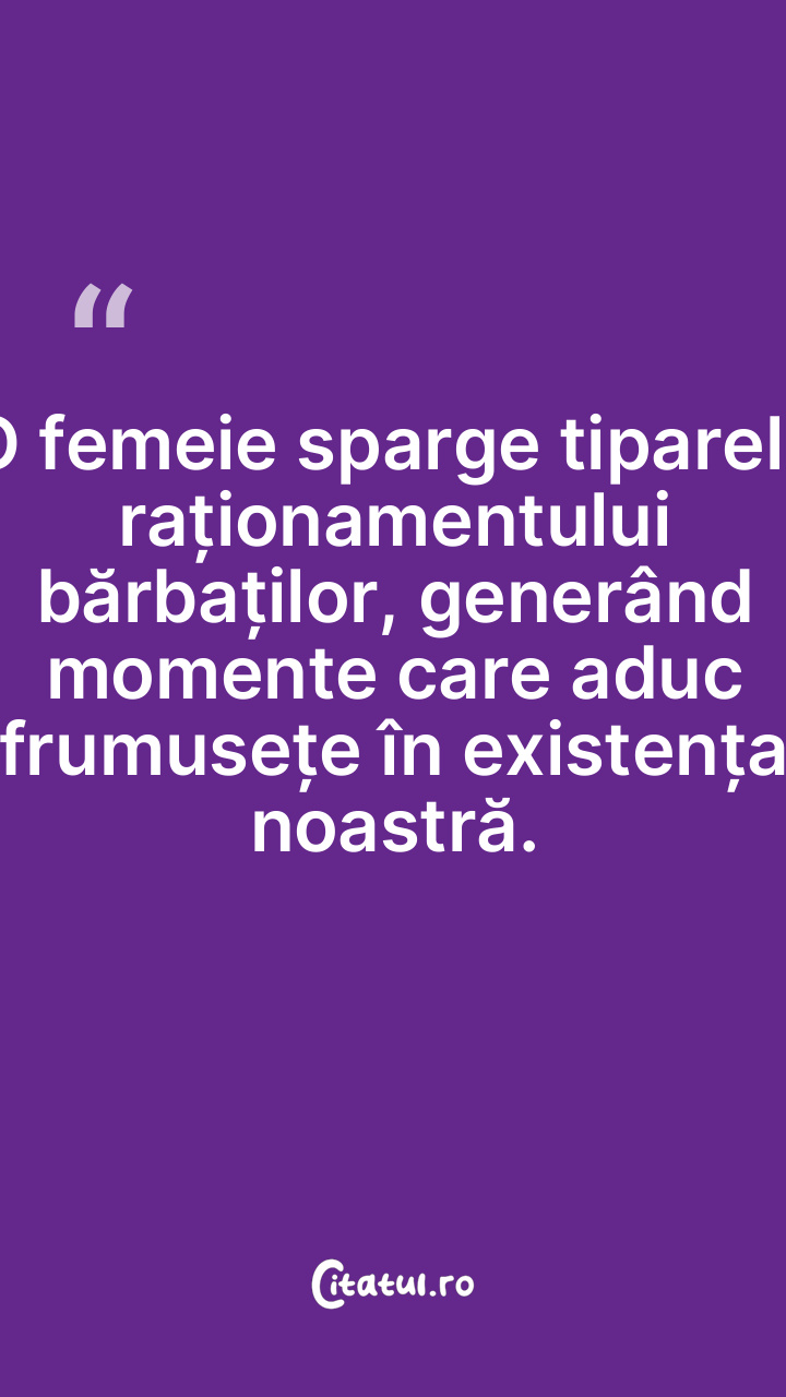 O femeie sparge tiparele raționamentului bărbaților, generând momente care aduc frumusețe în existența noastră.