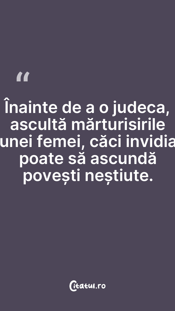 Înainte de a o judeca, ascultă mărturisirile unei femei, căci invidia poate să ascundă povești neștiute.