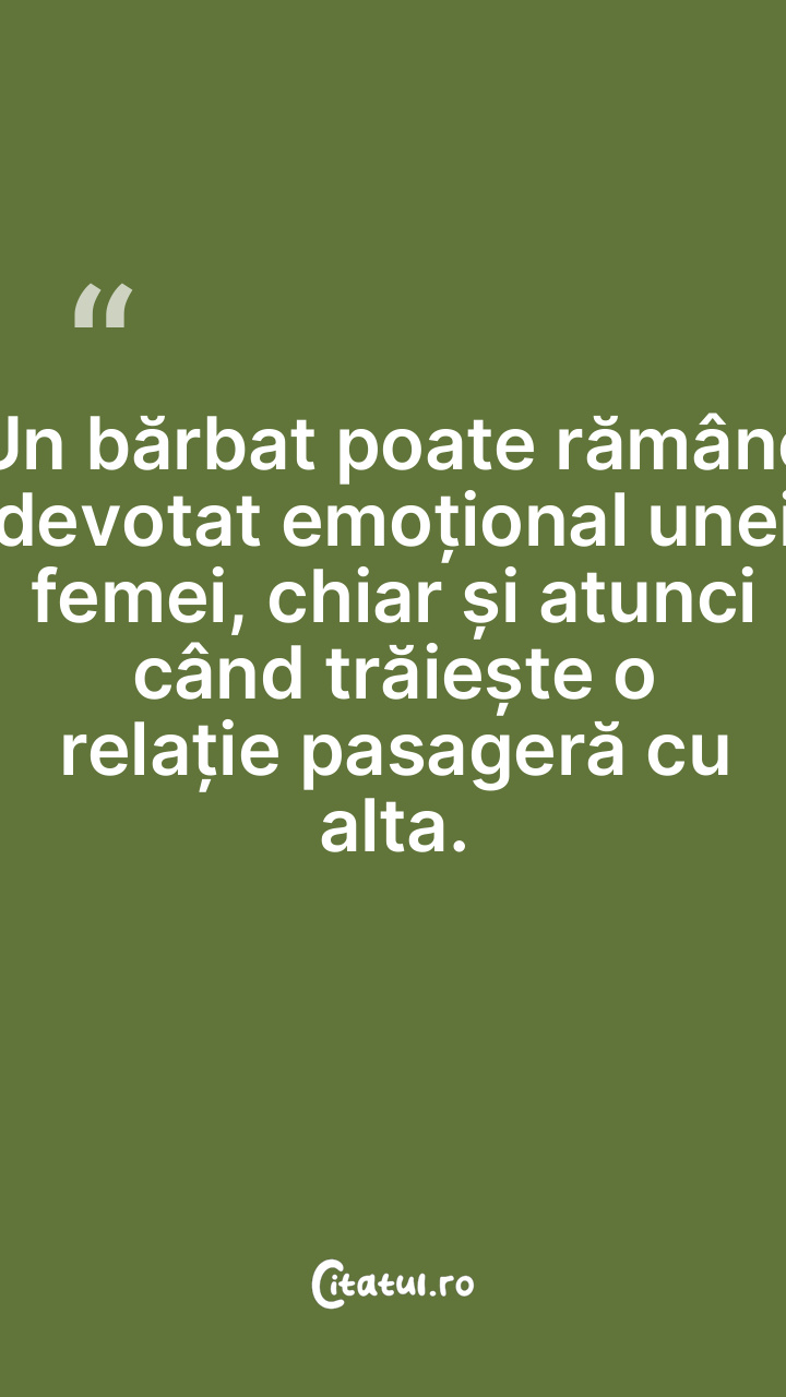 Un bărbat poate rămâne devotat emoțional unei femei, chiar și atunci când trăiește o relație pasageră cu alta.