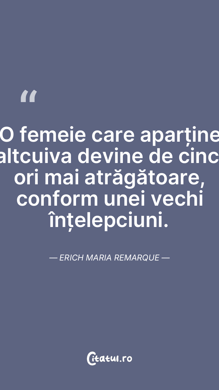 O femeie care aparține altcuiva devine de cinci ori mai atrăgătoare, conform unei vechi înțelepciuni. Erich Maria Remarque