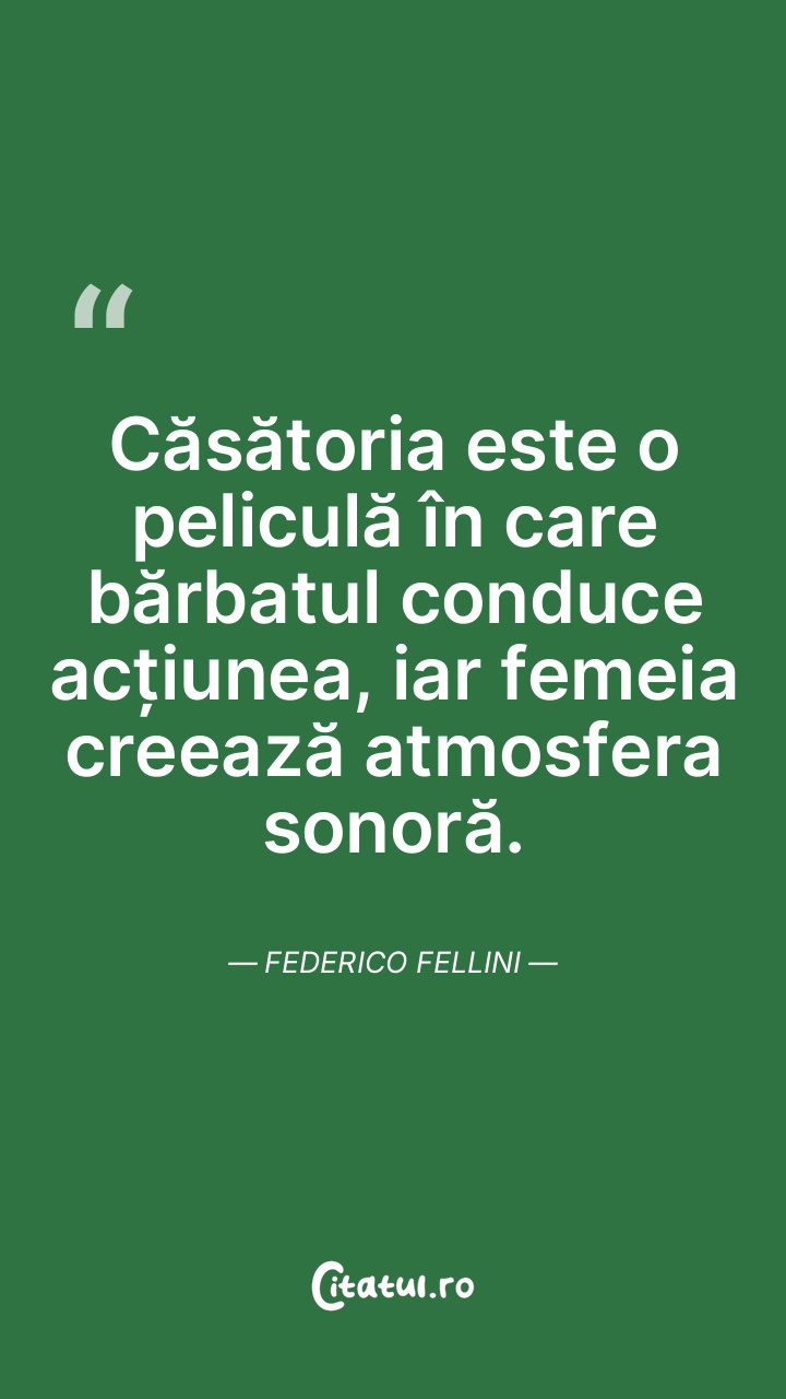 Căsătoria este o peliculă în care bărbatul conduce acțiunea, iar femeia creează atmosfera sonoră. Federico Fellini