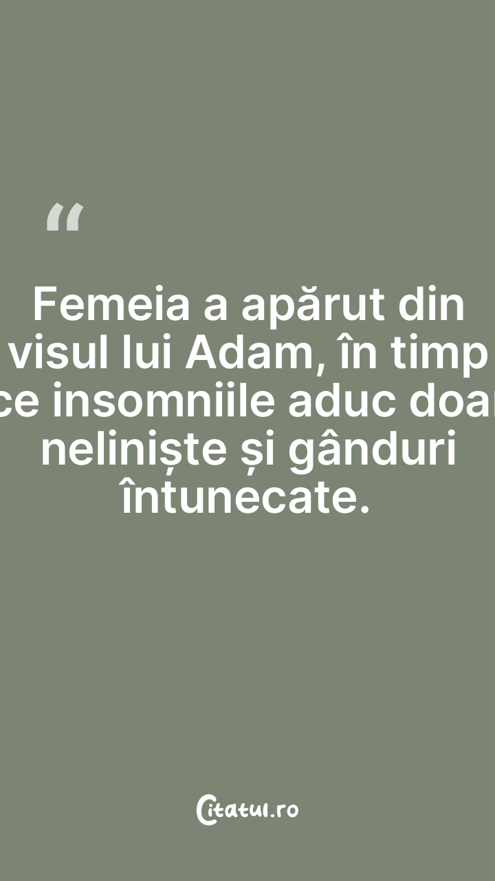 Femeia a apărut din visul lui Adam, în timp ce insomniile aduc doar neliniște și gânduri întunecate.