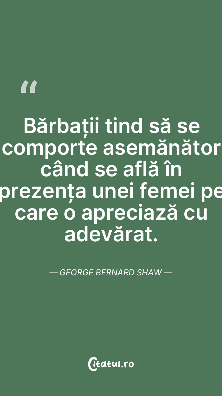 Bărbații tind să se comporte asemănător când se află în prezența unei femei pe care o apreciază cu adevărat. George Bernard Shaw