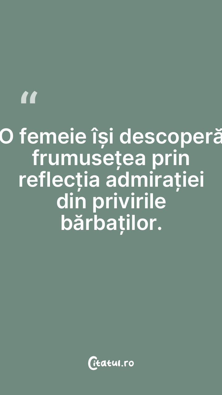 O femeie își descoperă frumusețea prin reflecția admirației din privirile bărbaților.