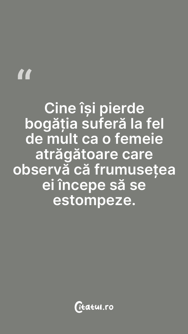 Cine își pierde bogăția suferă la fel de mult ca o femeie atrăgătoare care observă că frumusețea ei începe să se estompeze.