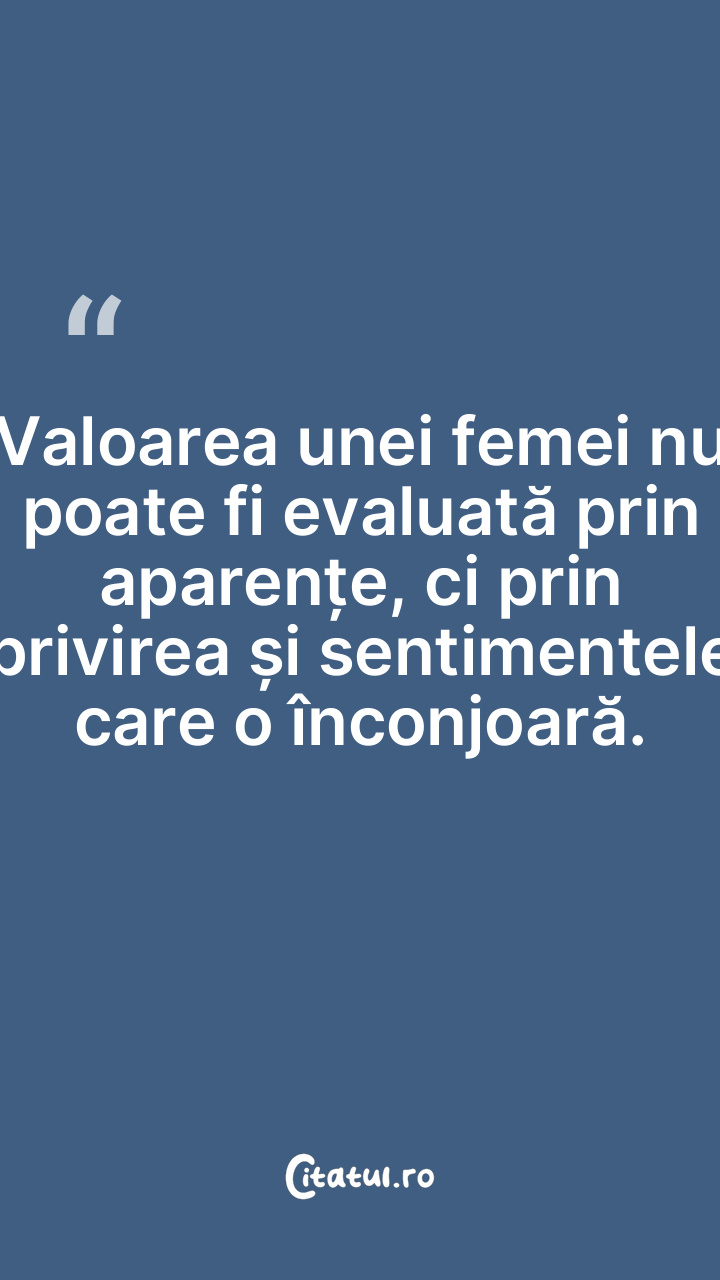 Valoarea unei femei nu poate fi evaluată prin aparențe, ci prin privirea și sentimentele care o înconjoară.