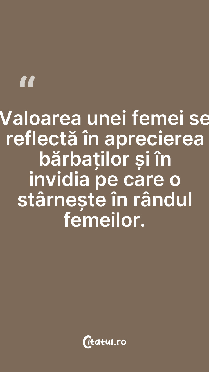 Valoarea unei femei se reflectă în aprecierea bărbaților și în invidia pe care o stârnește în rândul femeilor.