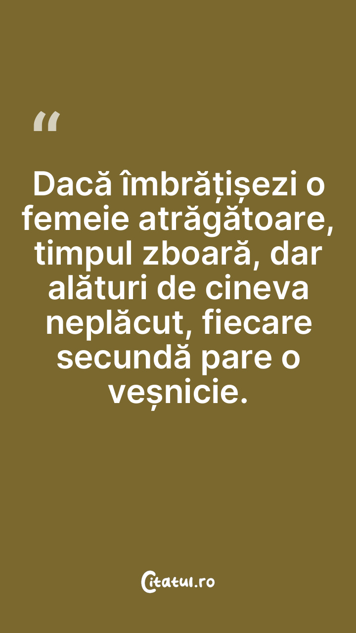 Dacă îmbrățișezi o femeie atrăgătoare, timpul zboară, dar alături de cineva neplăcut, fiecare secundă pare o veșnicie.
