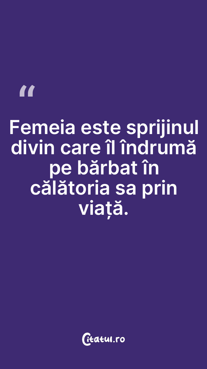 Femeia este sprijinul divin care îl îndrumă pe bărbat în călătoria sa prin viață.
