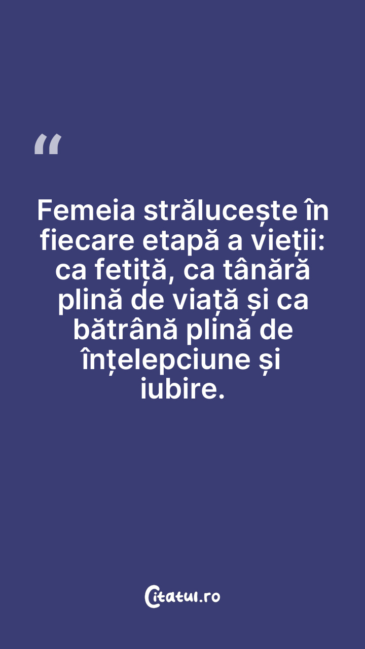 Femeia strălucește în fiecare etapă a vieții: ca fetiță, ca tânără plină de viață și ca bătrână plină de înțelepciune și iubire.