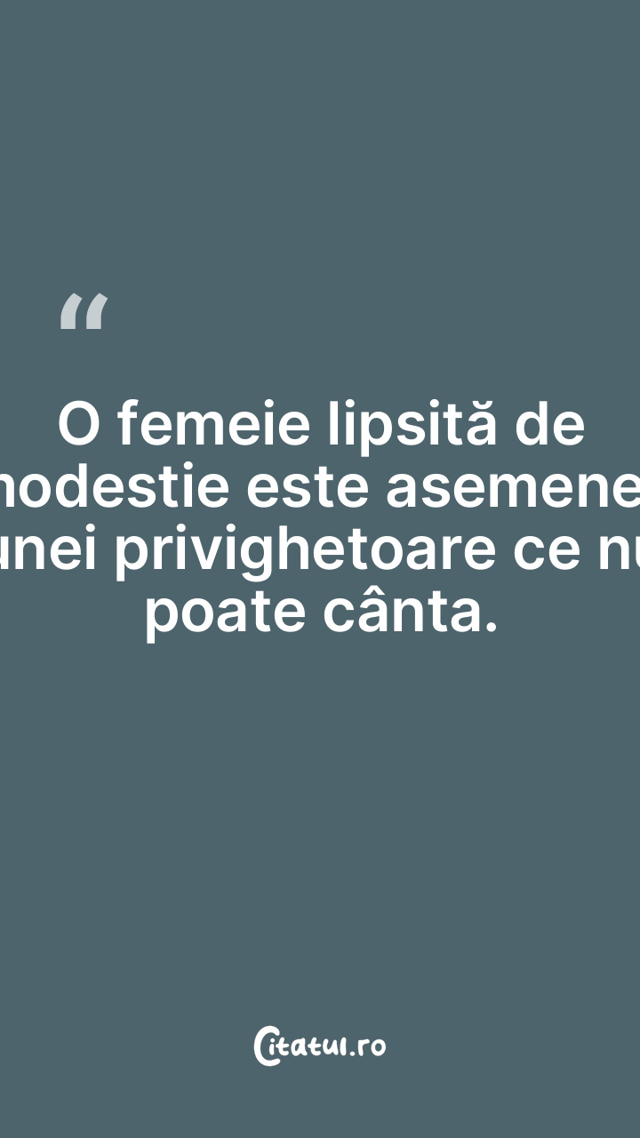 O femeie lipsită de modestie este asemenea unei privighetoare ce nu poate cânta.