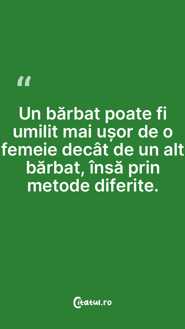 Un bărbat poate fi umilit mai ușor de o femeie decât de un alt bărbat, însă prin metode diferite.