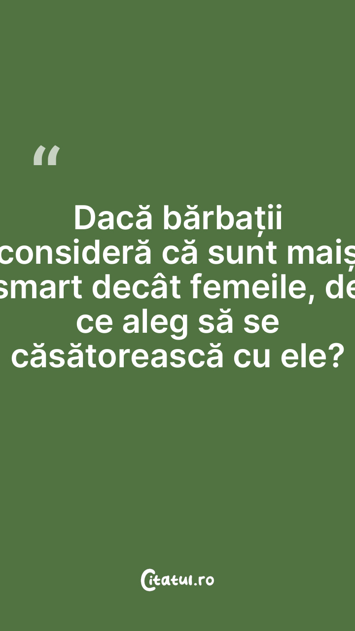 Dacă bărbații consideră că sunt maiș smart decât femeile, de ce aleg să se căsătorească cu ele?