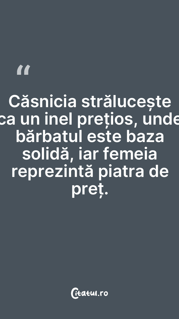 Căsnicia strălucește ca un inel prețios, unde bărbatul este baza solidă, iar femeia reprezintă piatra de preț.