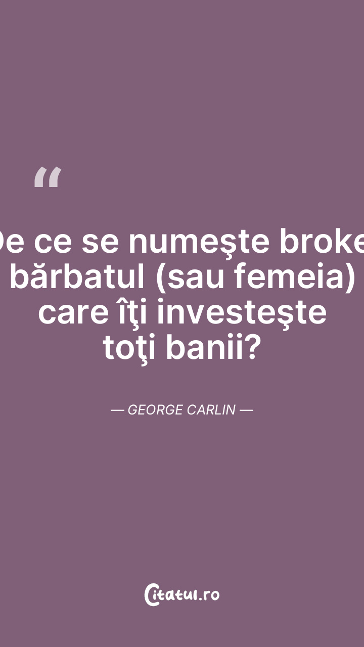 De ce se numeşte broker bărbatul (sau femeia) care îţi investeşte toţi banii? George Carlin