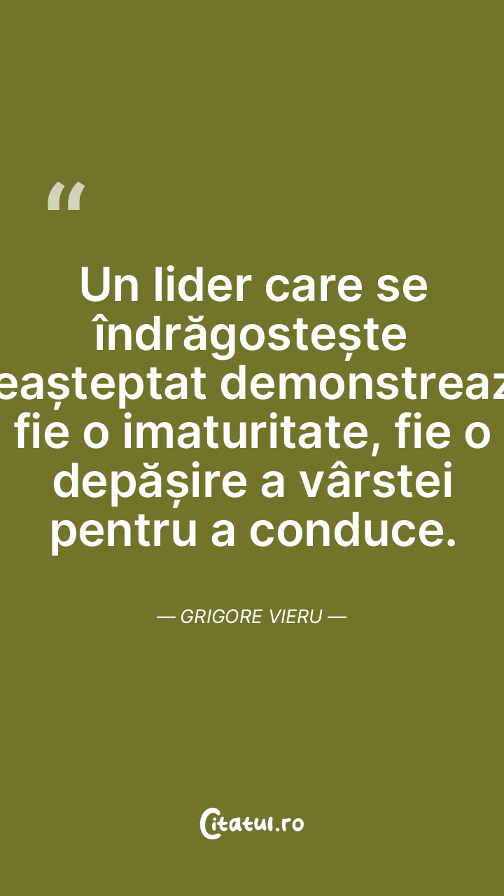 Un lider care se îndrăgostește neașteptat demonstrează fie o imaturitate, fie o depășire a vârstei pentru a conduce. Grigore Vieru