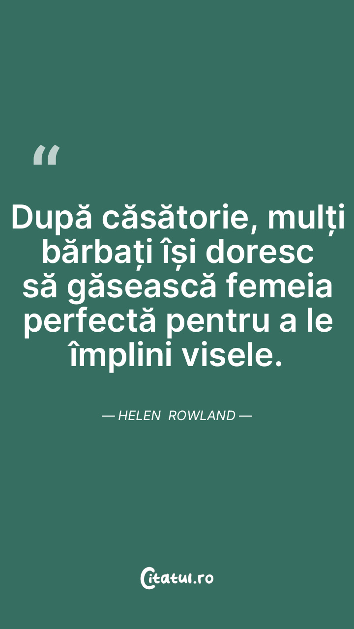 După căsătorie, mulți bărbați își doresc să găsească femeia perfectă pentru a le împlini visele. Helen Rowland