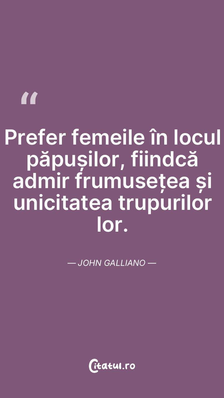 Prefer femeile în locul păpușilor, fiindcă admir frumusețea și unicitatea trupurilor lor. John Galliano
