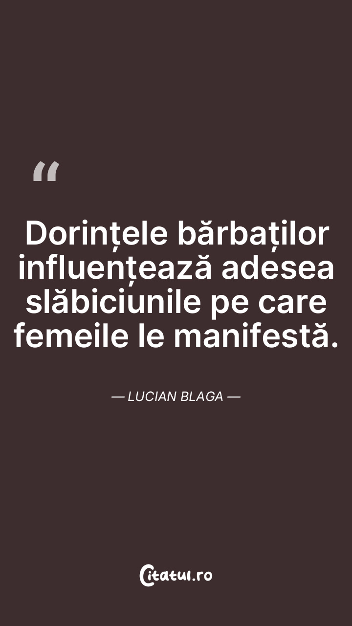 Dorințele bărbaților influențează adesea slăbiciunile pe care femeile le manifestă. Lucian Blaga