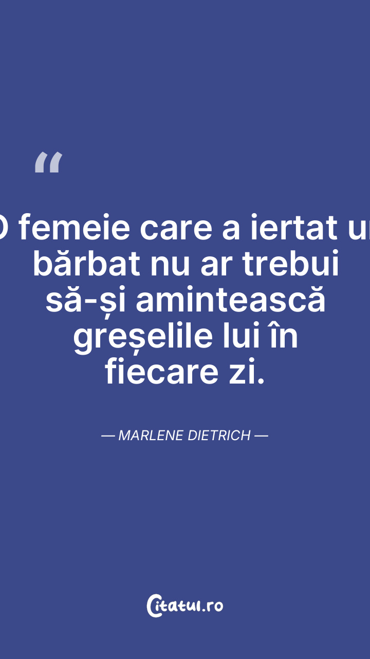 O femeie care a iertat un bărbat nu ar trebui să-și amintească greșelile lui în fiecare zi. Marlene Dietrich